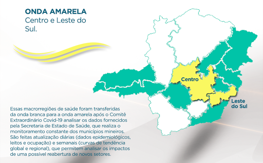 As regiões de Saúde Centro e Leste do Sul avançaram para a onda amarela do plano Minas Consciente, permitindo, assim, a reabertura segura de novos segmentos de mercado. O avanço será possível graças às taxas controladas da doença nas regiões e o índice seguro de ocupação de leitos de UTI.